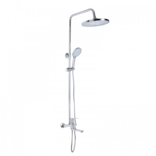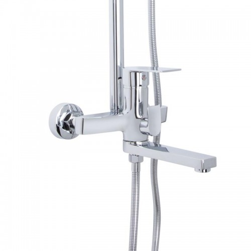 Душевая система Q-tap Aries QTARI1112CRM47606 — универсальная настенная система на три потребителя, которая включает верхний тропический душ, ручную лейку и поворотный излив. Корпус изготовлен из латуни с хромированным покрытием, стойка регулируется по высоте от 1000 до 1550 мм, длина душевого шланга — 1500 мм. В комплект входят все необходимые элементы: стойка, смеситель, ручная и верхняя лейки, кронштейн и крепёж.